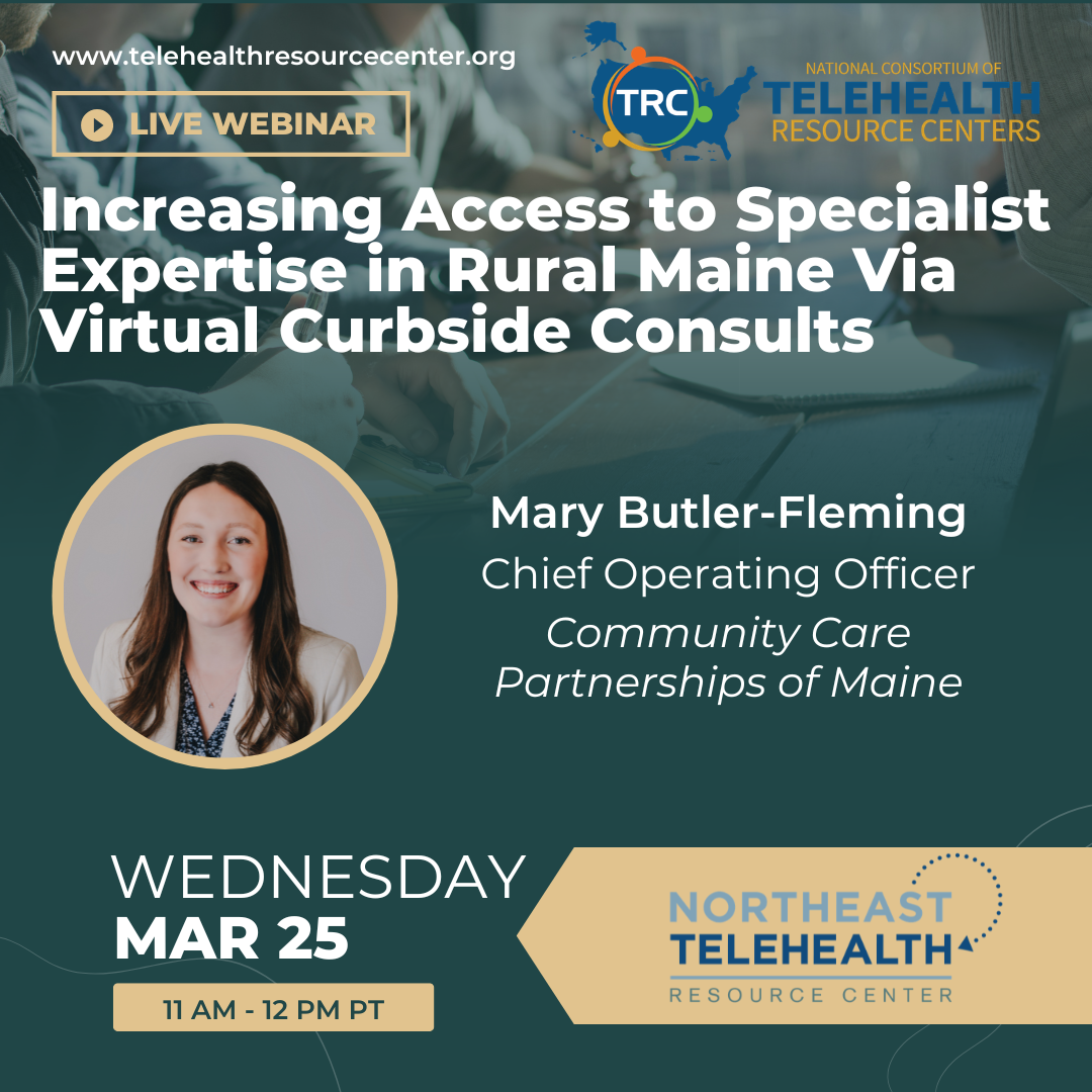 Join the Northeast Telehealth Resource Center (NETRC) for an informative webinar featuring Mary Butler-Fleming, COO, Community Care Partnerships of Maine.